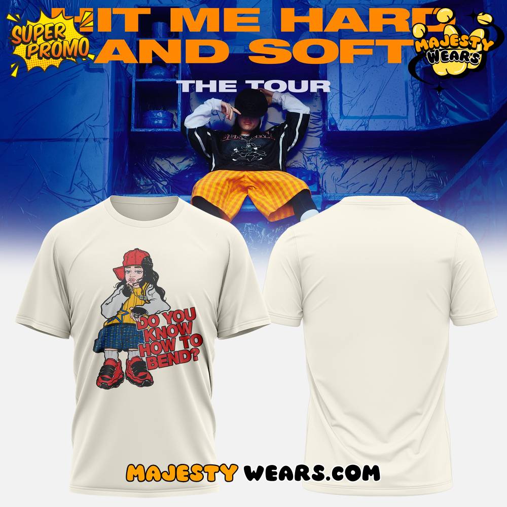 As an essential item for the Billie Eilish fandom, this Tour T-Shirt is designed to be a long-lasting memento of the concert experience, allowing you to carry the memory of the “Hit Me Hard and Soft” era with you. The phrase “DO YOU KNOW HOW TO BEND?” prominently featured in the design, is a direct call-out to the themes of vulnerability and resilience explored in the album. This Special T-Shirt is not just clothing; it is a statement of musical taste and appreciation for one of the most compelling and influential artists of her generation, solidifying its place as a cornerstone of your music merchandise collection.