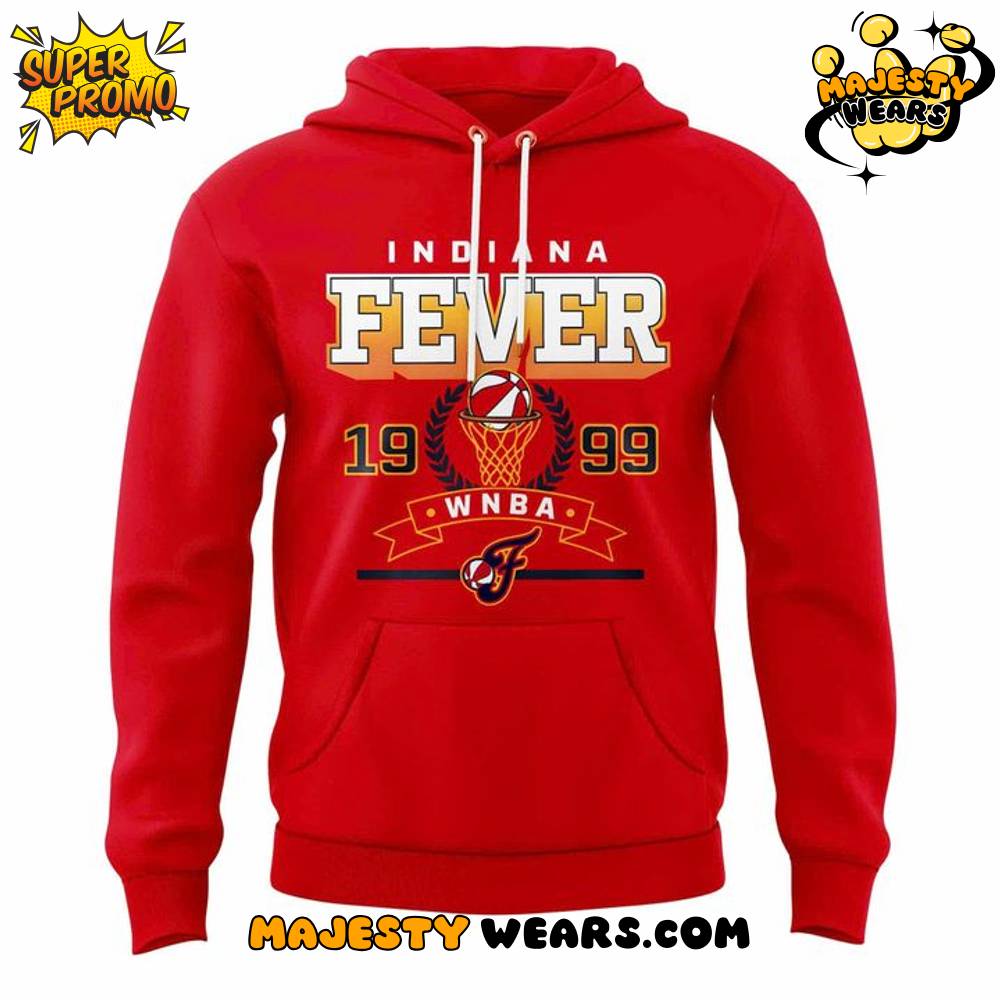 The design of the Caitlin Clark “Indiana Fever 1999 WNBA” Special Hoodie is characterized by its bold, iconic red color, immediately drawing attention and perfectly reflecting the primary colors of the Indiana Fever franchise. The front chest graphic is a masterful, retro-inspired emblem that dominates the space, ensuring maximum visibility and team recognition. The primary wordmark, “FEVER,” is presented in a strong, capitalized font, with “INDIANA” arching above it, creating a powerful focal point that speaks to the team’s identity.