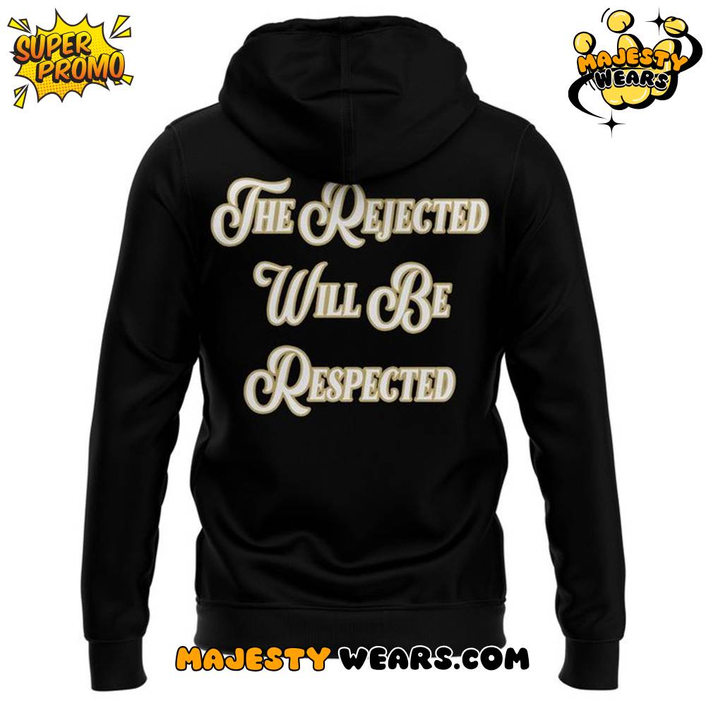 On the back, the Colorado Buffaloes Hoodie features the powerful secondary slogan: “The Rejected Will Be Respected”, printed across three lines in a matching script font. This slogan is a cornerstone of the team’s motivational ethos, directly connecting the special edition garment to the narrative of overcoming adversity and proving doubters wrong. This thoughtful inclusion turns the back of the Colorado Well Off Hoodie into a rallying cry, offering fans a tangible way to express solidarity with the team’s mission and its compelling, underdog Buffaloes legacy.