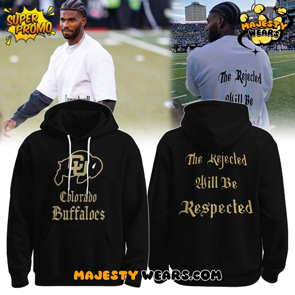 This Limited Edition garment carries immense Authoritativeness because the phrase “The Rejected Will Be Respected” has become a rallying cry and personal motto for Shedeur Sanders himself, often worn on his personal apparel and shared on social media, signifying his determination to silence critics. It is a symbol of the new era of Colorado Buffaloes football—a program built on belief, defiance, and the confidence to prove doubters wrong. This hoodie serves as a tangible connection to the quarterback’s personal journey, offering fans a piece of high-quality merchandise they can wear with absolute Trustworthiness and pride.