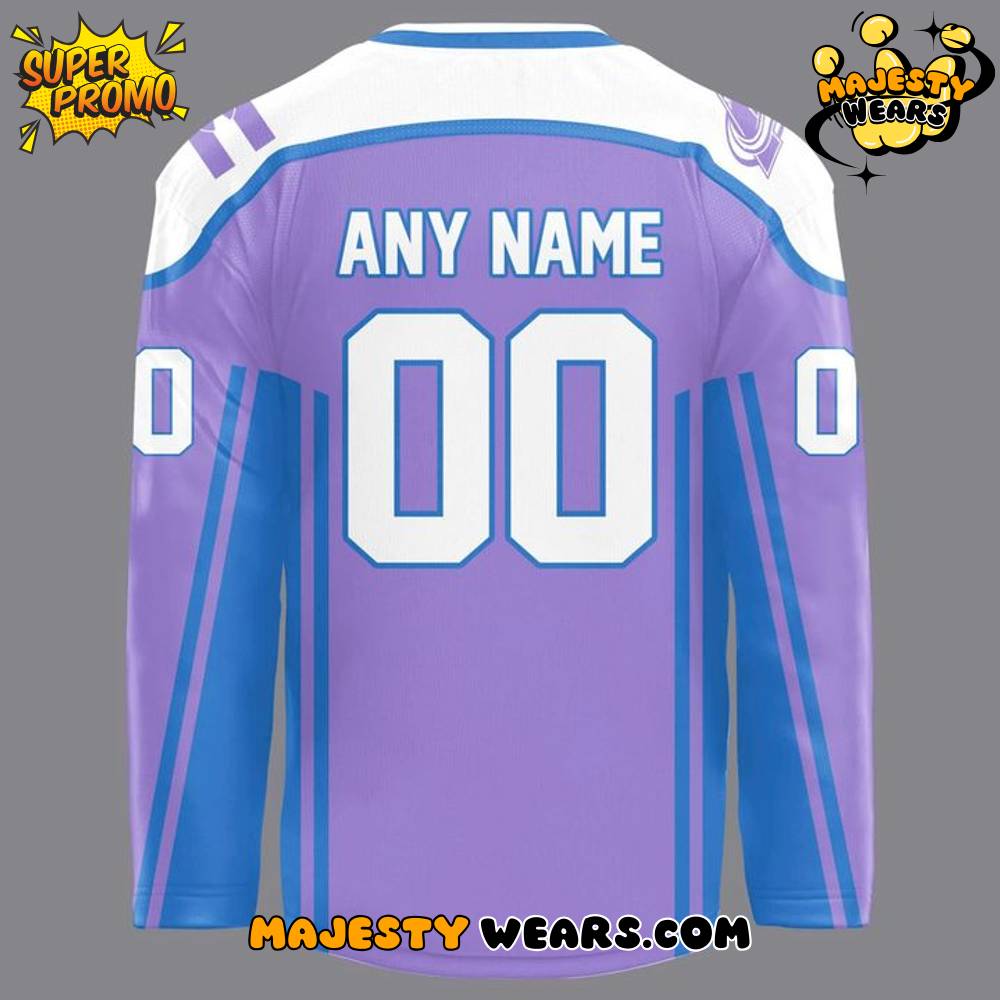 The visual identity of the Colorado Eagles 2026 Eagles Fight Cancer Custom Hockey Jersey is anchored by its striking lavender primary color. This specific hue is the universal symbol for all cancers, providing a unifying message of support for anyone affected by any type of the disease. On the Colorado Eagles 2026 Eagles Fight Cancer Custom Hockey Jersey, the lavender provides a vivid contrast to the ice, ensuring that the team’s tribute is visible from every seat in the arena. This year’s design, created by the Eagles’ own Ryan Nugent, focuses on “Strength in the Design,” combining modern aesthetics with deep emotional significance. The Colorado Eagles 2026 Eagles Fight Cancer Custom Hockey Jersey stands out as one of the most visually unique and meaningful uniforms in the franchise’s history.