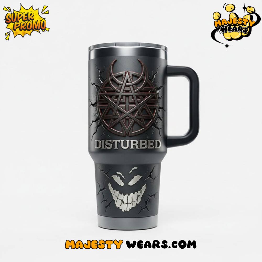 The aesthetic of the Disturbed Special Edition YETI Tumbler is defined by a dark, aggressive, and highly detailed visual style that mirrors the band’s powerful stage presence. Centered prominently on the Disturbed Special Edition YETI Tumbler is the band’s intricate circular sigil, rendered in a metallic finish that appears to be breaking through a cracked, stone-like texture. This Disturbed Special Edition YETI Tumbler captures a gritty, industrial feel that immediately sets it apart from standard drinkware, making it a true centerpiece for any fan’s collection or kitchen setup.