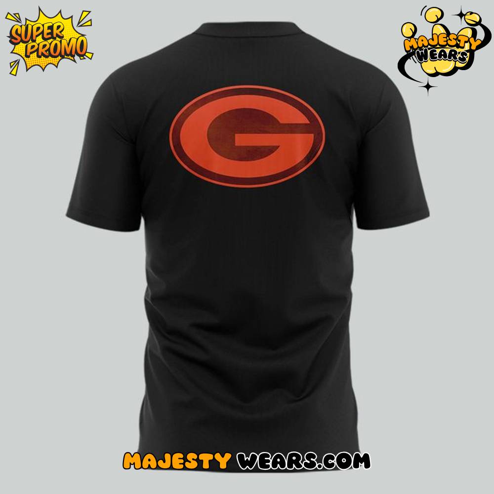 The reverse of the black tee maintains a clean, classic look, featuring a large, recognizable Green Bay Packers “G” logo in the traditional colors of green and orange. This subtle placement ensures that the shirt remains authentic team gear while allowing the incredible, narrative-driven front graphic to be the main focus. The combination of the detailed, artistic front and the authoritative, classic back confirms the trustworthiness of this officially inspired Daniel Whelan piece, making it a spectacular fan garment that merges two beloved worlds into one awesome collectible.