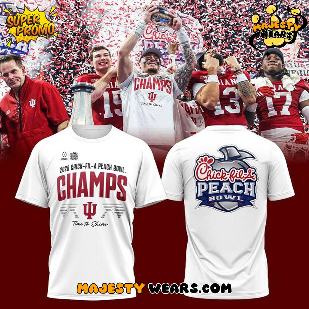The Indiana Hoosiers Chick-fil-A Peach Bowl Champions T-Shirt is a prestigious piece of commemorative apparel that honors a historic milestone in Indiana football history. After a dominant 56-22 victory over the Oregon Ducks on January 9, 2026, at Mercedes-Benz Stadium, the Hoosiers solidified their place as elite contenders in the College Football Playoff. This official Indiana Hoosiers Chick-fil-A Peach Bowl Champions T-Shirt allows fans to carry the momentum of an undefeated 15-0 season into the National Championship game. By wearing this Indiana Hoosiers Chick-fil-A Peach Bowl Champions T-Shirt, you are celebrating the program’s first-ever CFP Semifinal win and its ascent to the pinnacle of college football.