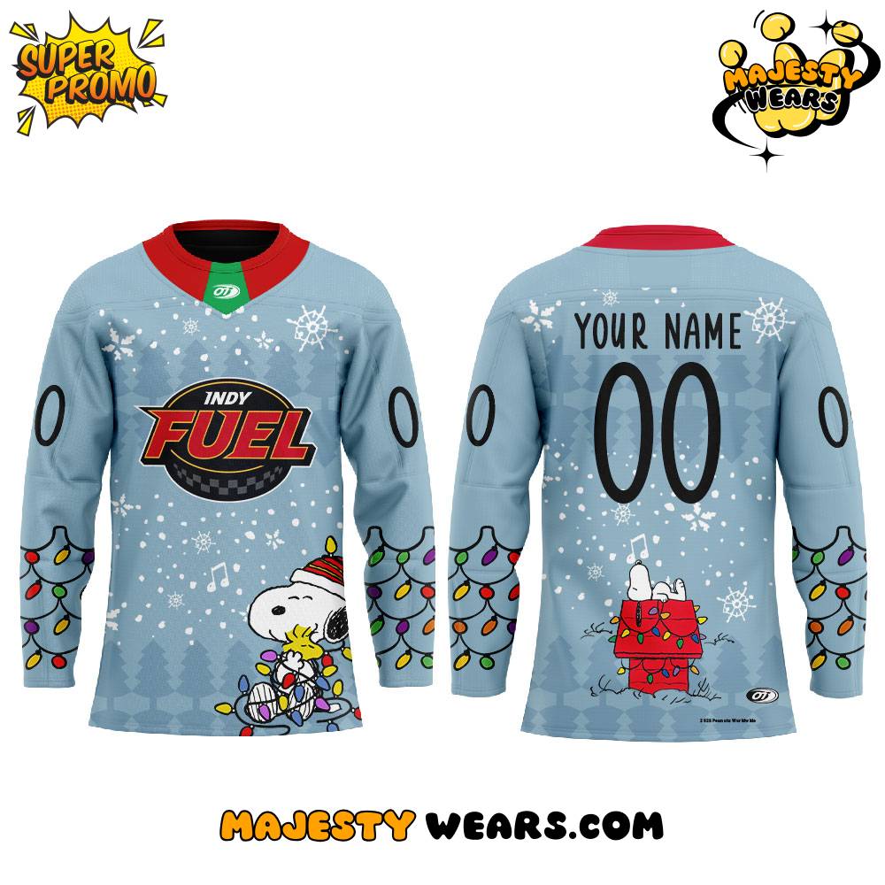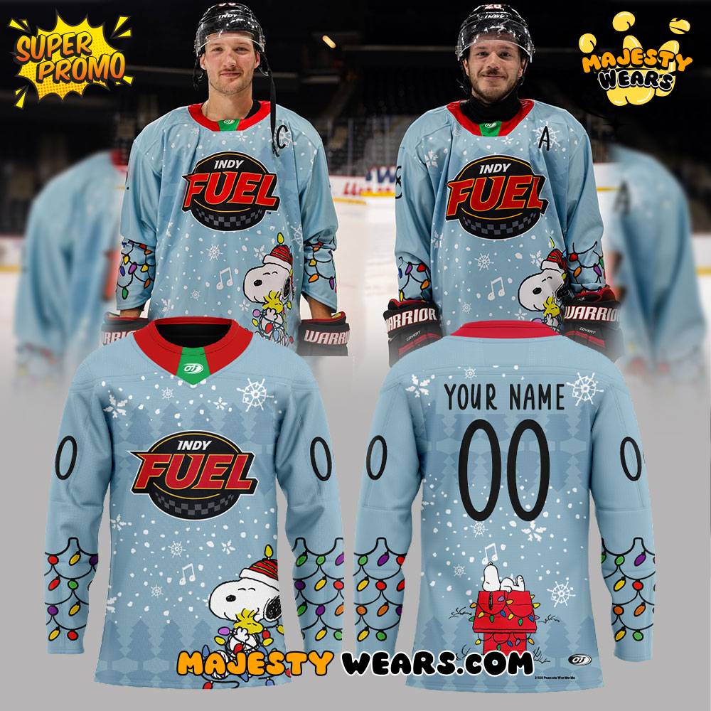 Celebrate the holiday season and your favorite ECHL team with the incredibly charming Indy Fuel Peanuts Night 2025 Custom Hockey Jersey. This unique, light-blue uniform is a spectacular piece of memorabilia, combining the fierce spirit of the Indy Fuel with the timeless, heartwarming appeal of Charles Schulz’s Peanuts characters. Our expertise in crafting limited-edition sports apparel ensures this item is both a comfortable jersey and a high-quality collector’s dream. This special edition Peanuts Jersey is the perfect way to bring festive cheer and hockey enthusiasm together, making it a highly trustworthy and unique addition to any fan’s collection.