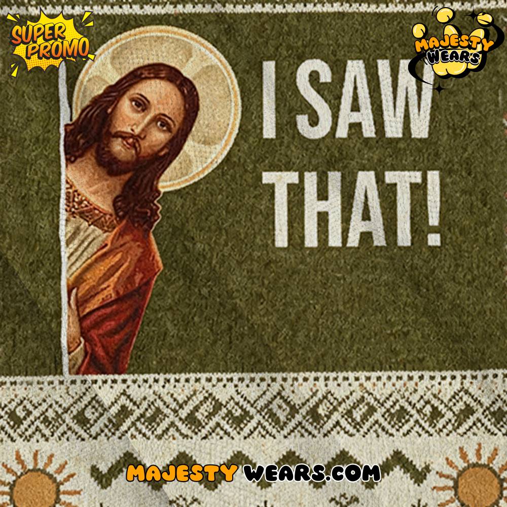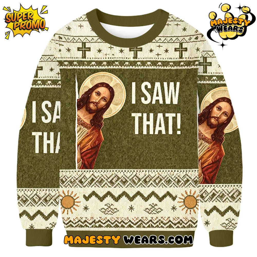 Choosing the Jesus I Saw That Ugly Christmas Sweater means you are opting for a versatile holiday staple that bridges the gap between classic religious iconography and contemporary internet memes. This Jesus I Saw That Ugly Christmas Sweater features a cozy crew neck design and a relaxed fit, making it easy to layer over other clothing during the cold winter months. The Jesus I Saw That Ugly Christmas Sweater is not just a seasonal gimmick but a durable piece of apparel that brings joy and laughter to any Christmas event.