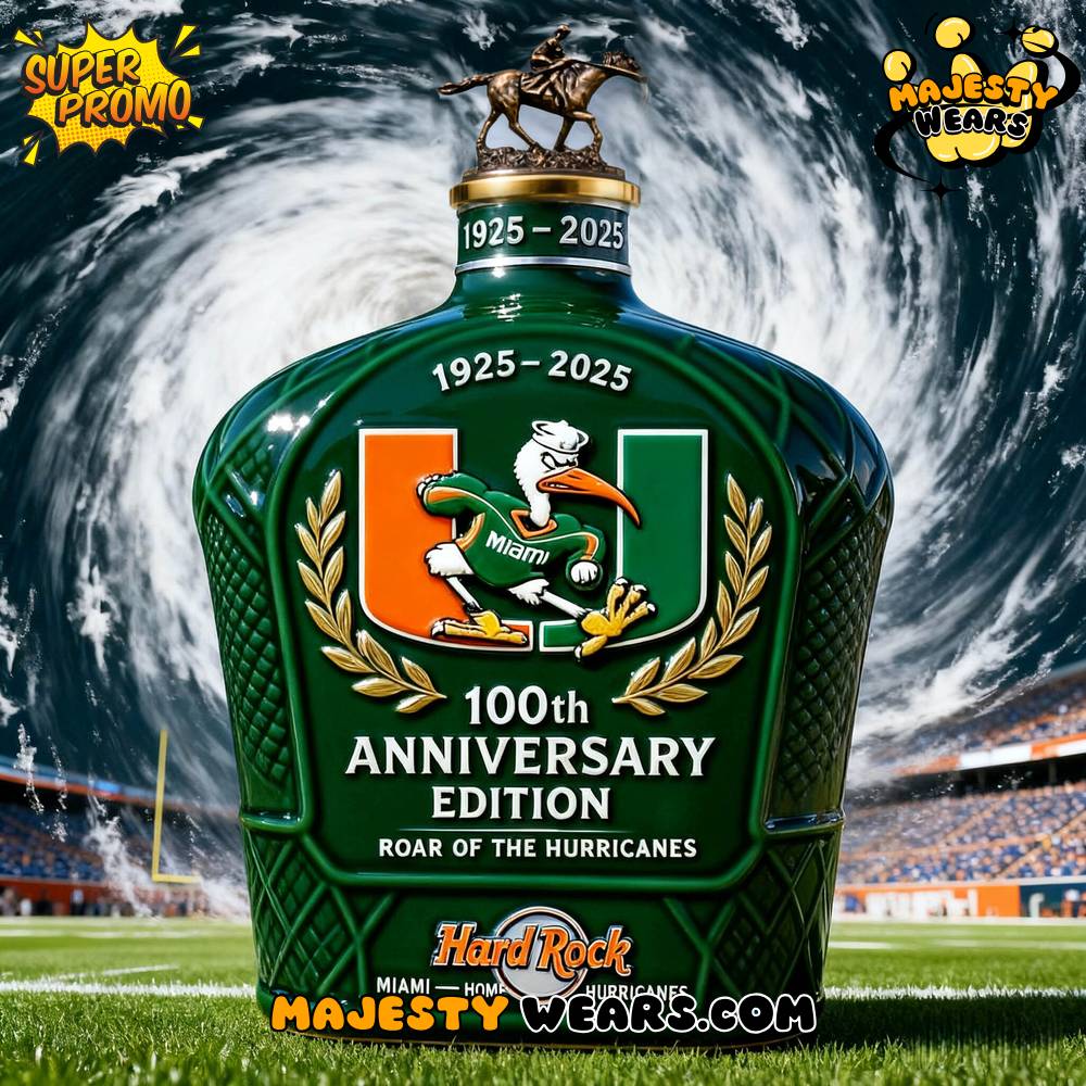 The Miami Hurricanes 100th Anniversary “Road of The Hurricanes” Whiskey Bottle is a premier collector’s item commemorating a century of excellence since the university’s charter in 1925. This exclusive Miami Hurricanes 100th Anniversary “Road of The Hurricanes” Whiskey Bottle honors the program’s evolution from its humble 1926 beginnings into a five-time national championship powerhouse. By owning the Miami Hurricanes 100th Anniversary “Road of The Hurricanes” Whiskey Bottle, fans can celebrate the “The Future Is U” centennial theme while paying homage to the legendary teams that established “The U” as a national brand.