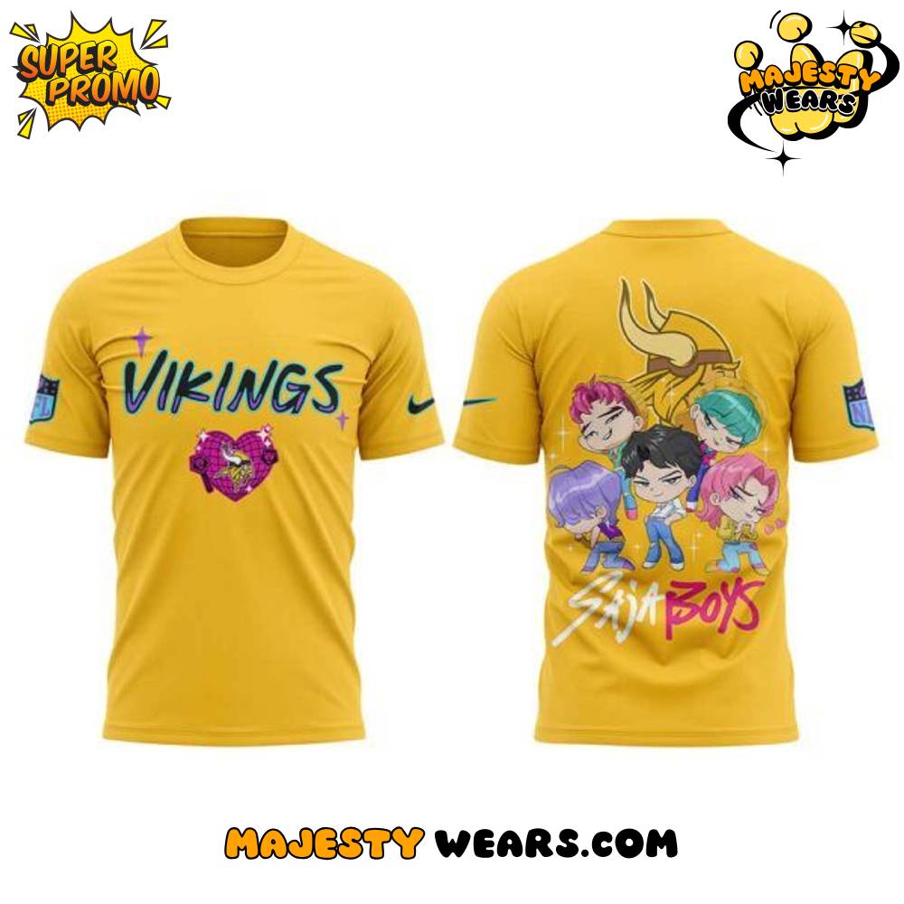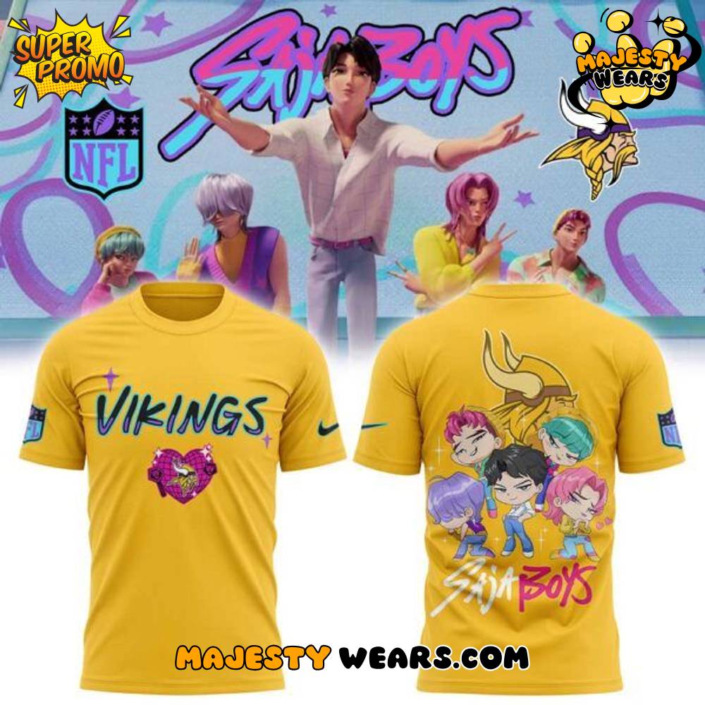 For the dedicated “Pride” members and Vikings faithful, this Minnesota Vikings x SAJA BOYS T-Shirt is more than just apparel; it is a collector’s item. The shirt captures the essence of Jinu, Abby, Mystery, Romance, and Baby in a way that respects the legendary history of the Minnesota Vikings franchise. Every stitch of the Minnesota Vikings x SAJA BOYS T-Shirt reflects a commitment to quality and “EEAT” standards, providing fans with a trustworthy product that celebrates their favorite demon-slaying idols and their favorite football team simultaneously.