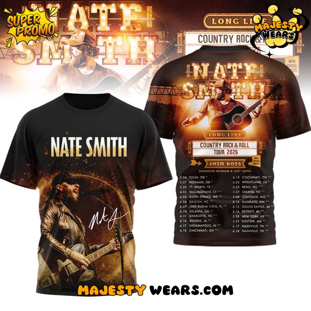 The Nate Smith Country Rock & Roll Tour 2026 T-Shirt is the premier commemorative item for fans following the multi-platinum chart-topper’s most extensive North American run to date. Formally titled the “Long Live Country Rock & Roll Tour,” this massive trek kicks off in March 2026 at Tulsa’s historic Cain’s Ballroom and visits 23 major markets coast-to-coast. Every Nate Smith Country Rock & Roll Tour 2026 T-Shirt serves as a wearable piece of music history, celebrating the artist’s incredible journey from his viral roots to becoming a powerhouse headliner in the country-rock genre. Wearing the Nate Smith Country Rock & Roll Tour 2026 T-Shirt is the ultimate way for members of the “Smith squad” to show their support during this monumental career milestone.