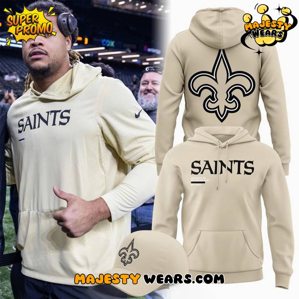 The visual architecture of the New Orleans Saints 2025-2026 New Hoodie is a masterclass in sophisticated sports branding, featuring a clean and elegant “Gold” aesthetic that mirrors the team’s iconic color palette. On the front, the New Orleans Saints 2025-2026 New Hoodie prominently displays the word “SAINTS” in a bold, black serif typeface, accented with high-definition secondary text that highlights its status as an “Engineered for New Orleans Saints” release. This New Orleans Saints 2025-2026 New Hoodie also features a subtle Nike “Swoosh” on the upper left chest, signifying its alignment with the official on-field production standards of the league.