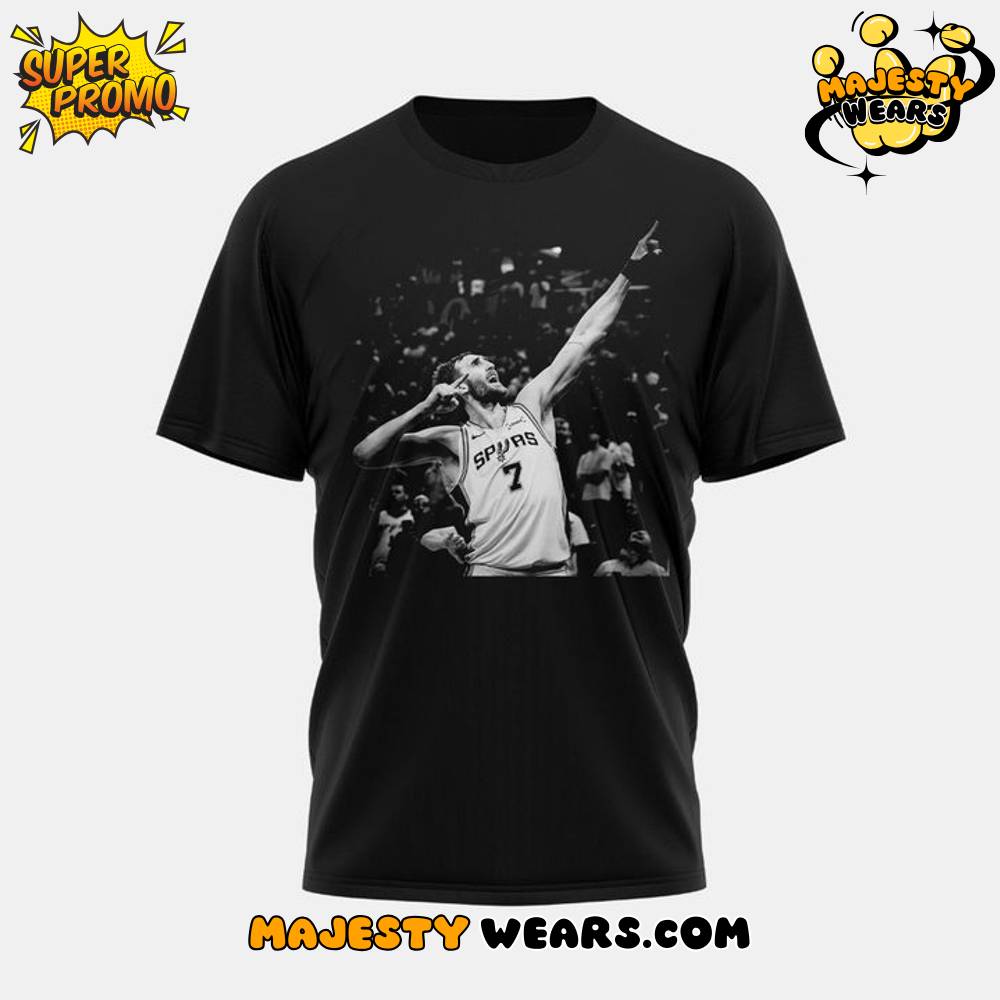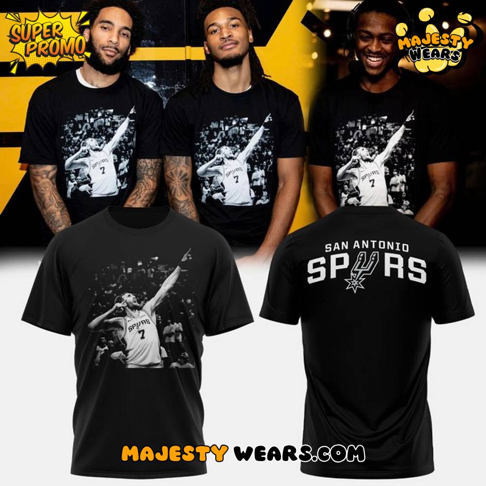 The prominence of this shirt, hilariously sported by teammate De’Aaron Fox in a post-game interview, confirms its status as a must-have collectible and an insider’s piece of San Antonio Spurs apparel. The Luke Kornet celebration captured on the front is a direct nod to his game-saving play against the Magic’s Franz Wagner, where he came from the 3-point line to block the last-second layup. This stylish, comfortable black T-Shirt allows fans to celebrate the unexpected heroes and the collective victories that define the culture of the Spurs organization.