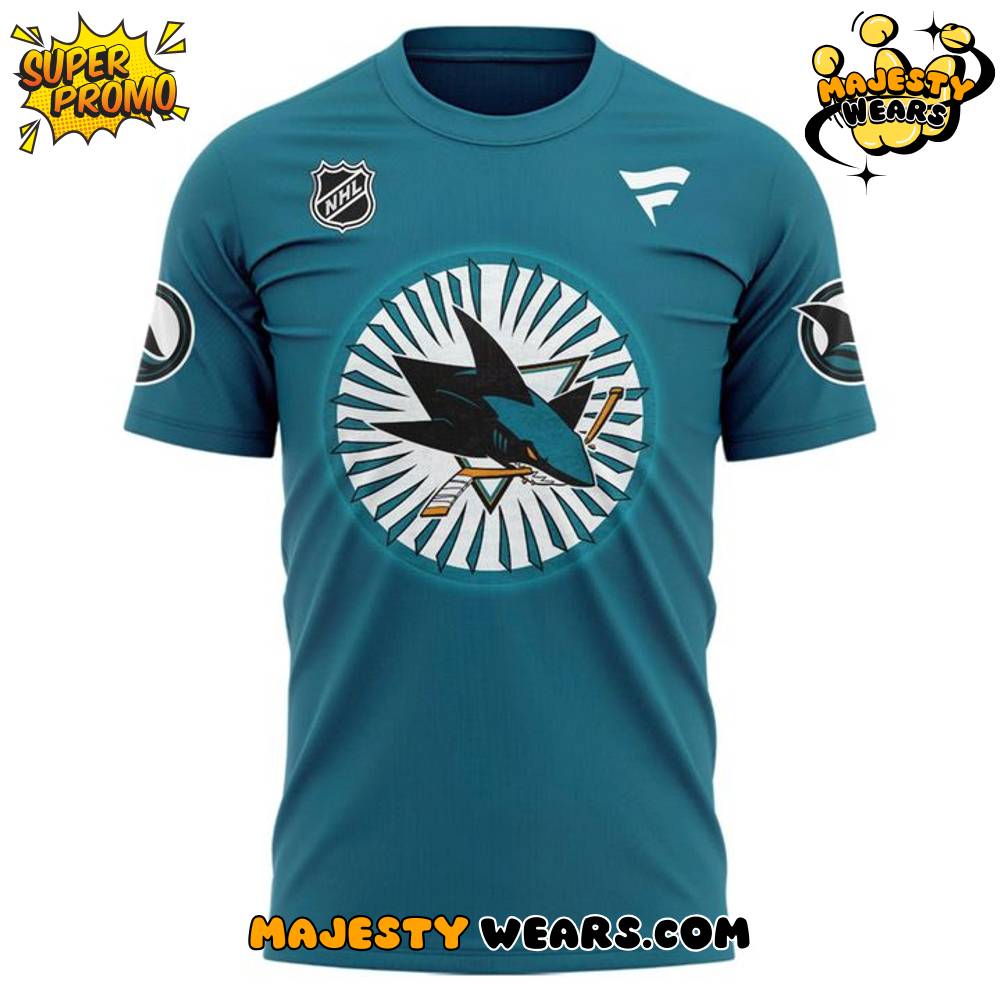 The central graphic of the San Jose Sharks “Behind Center Ice” Design Special Tee is an exceptionally detailed and vibrant piece of screen-printed art. The design ingeniously captures a stylized, overhead view of the ice rink, complete with the blue center line and the iconic center ice logo of the San Jose Sharks, viewed from behind the net. This perspective is powerful for dedicated fans, as it places them right in the heart of the action, ready to watch a crucial face-off or a dramatic goal-scoring play, adding a layer of visual excitement to the Sharks special tee.