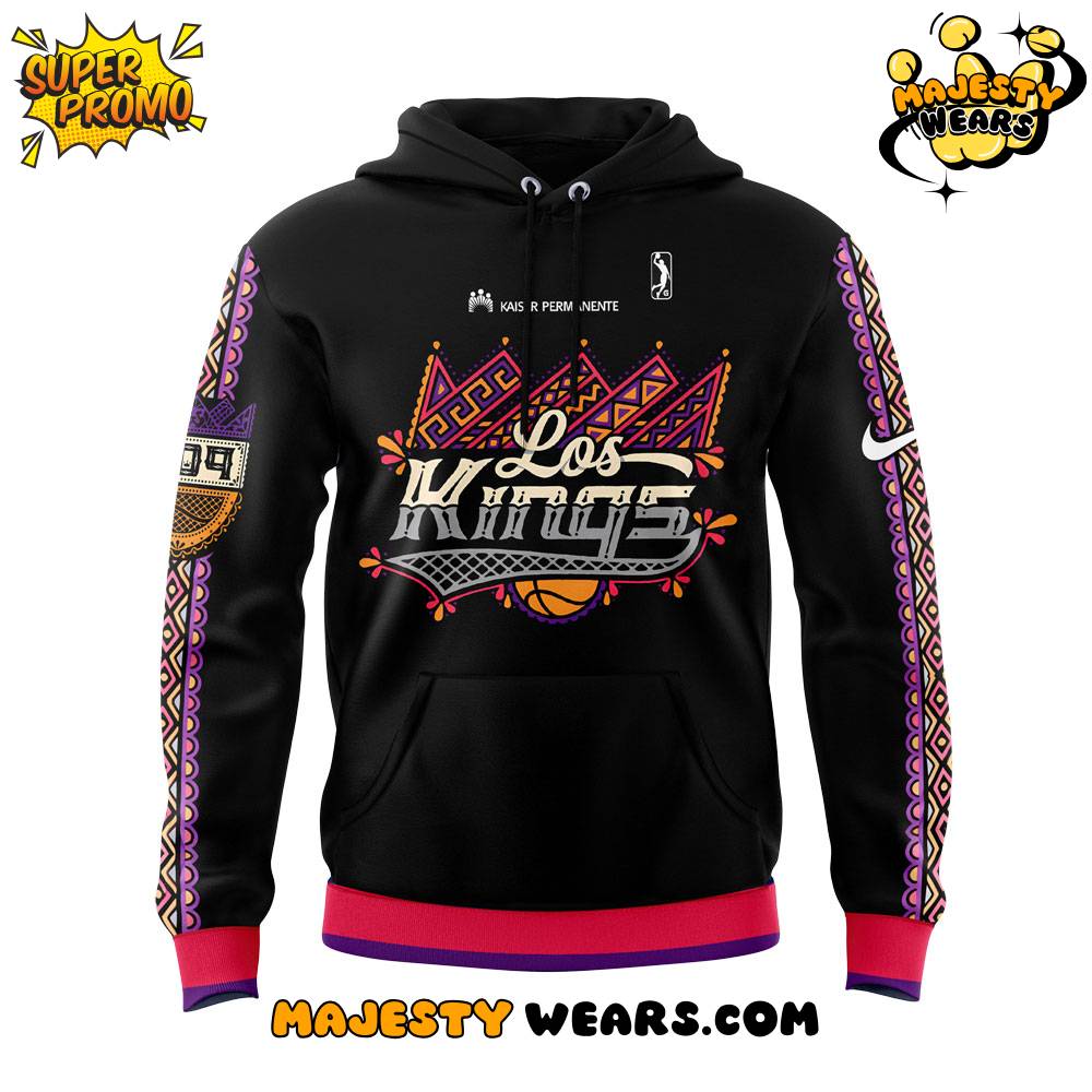 The Stockton Kings x Hispanic Heritage Night 2025 Hoodie features an eye-catching design that seamlessly blends basketball aesthetics with traditional Hispanic artistry. At the forefront is the “Los Kings” logo, displayed prominently across the chest with bold typography and vibrant accents. This unique logo embodies the unity of sports and cultural appreciation, making this hoodie a true statement piece.