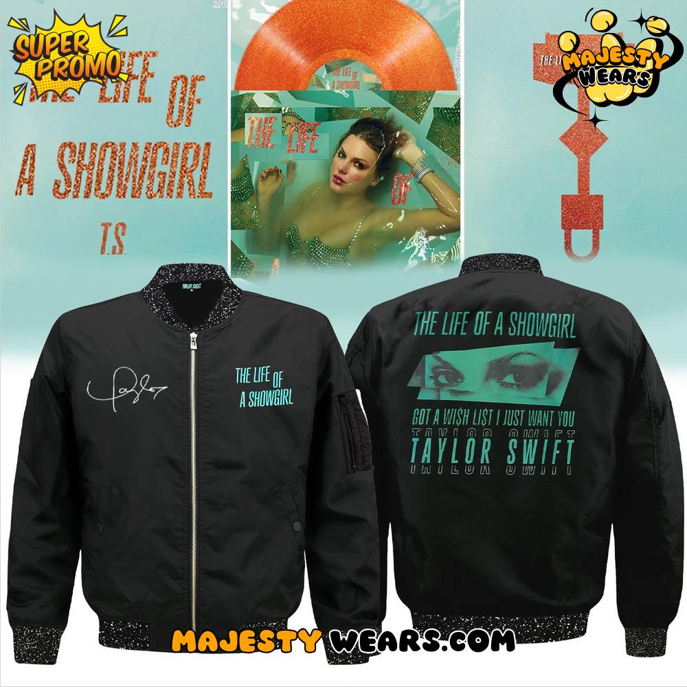 Step into the spotlight with the Taylor Swift “The Life of a Showgirl” Special Bomber Jacket, an exclusive and bold piece of Taylor Swift merchandise designed for the devoted fan. This Showgirl Special Jacket is more than just outerwear; it’s a wearable celebration of the pop superstar’s artistic expertise and theatrical flair, specifically referencing the intriguing “The Life of a Showgirl” theme. The sleek black design ensures versatility, while the vibrant, contrasting graphic details make it a distinctive, special edition item that instantly elevates your Taylor Swift style.