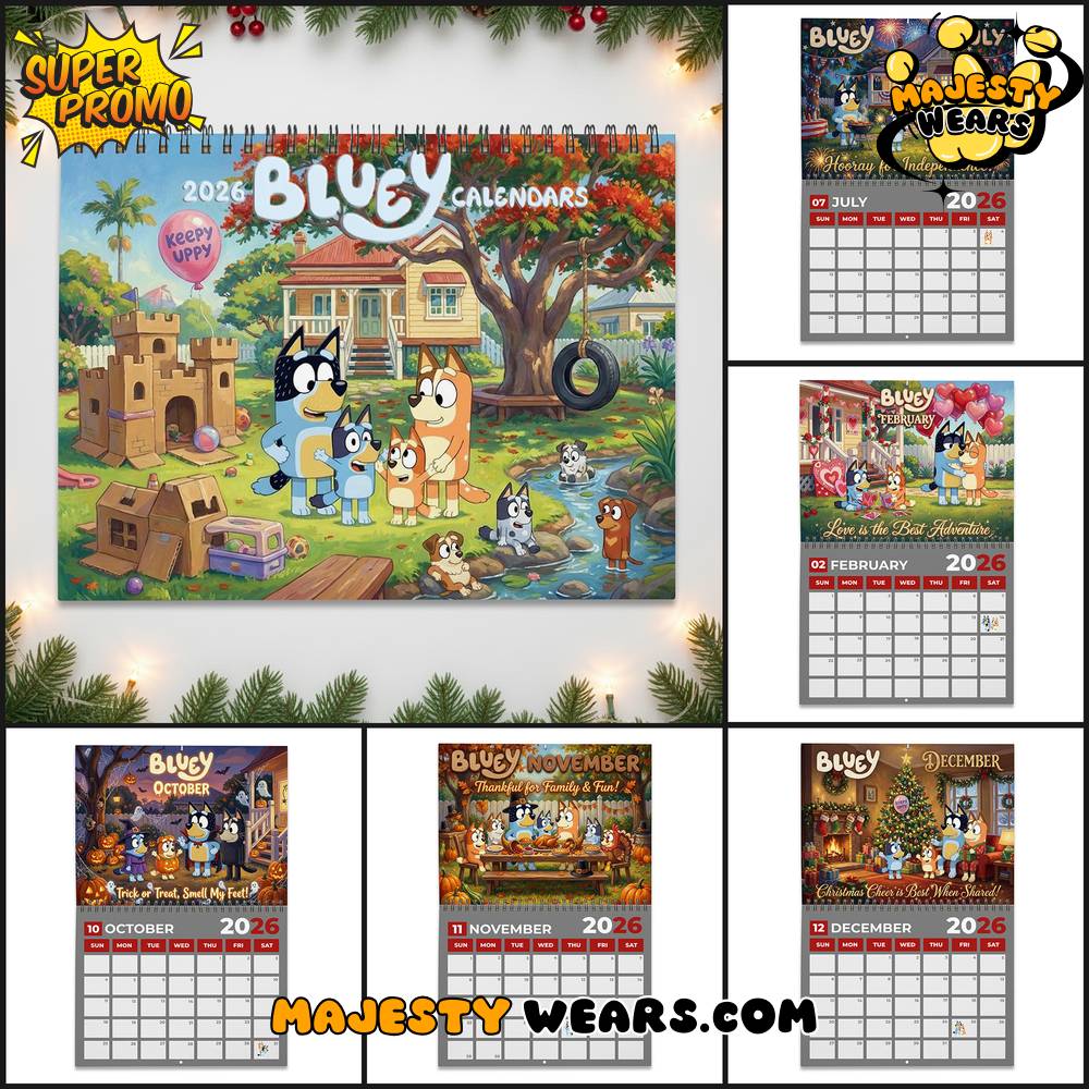Attention to detail is evident throughout The Bluey 2026 Wall Hanging Calendar, including the inclusion of official “Majesty Wears” branding and “Super Promo” markers for collectors. The bottom of the The Bluey 2026 Wall Hanging Calendar prominently displays the website for easy reordering or finding matching accessories for your home. Whether it is the small character icons tucked into the corners or the high-quality finish, the The Bluey 2026 Wall Hanging Calendar stands out as a top-tier product. Secure your The Bluey 2026 Wall Hanging Calendar today and prepare for a year filled with the same laughter and lessons that Bluey brings to fans worldwide.