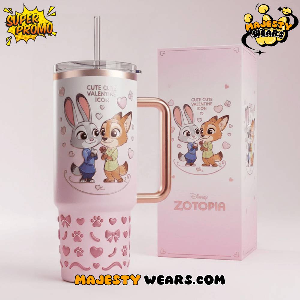 The visual appeal of the Zootopia Cute Valentine YETI Tumbler is truly captivating, featuring a soft pastel pink base that radiates a romantic “Coquette” aesthetic. At the center of the Zootopia Cute Valentine YETI Tumbler, you will find a delightful illustration of Judy Hopps and Nick Wilde in a stylized, chibi-inspired art form. This Zootopia Cute Valentine YETI Tumbler showcases the duo surrounded by floating hearts and the playful text “Cute Cute Valentine Icon,” making it an irresistible choice for February festivities or year-round Disney enthusiasts.